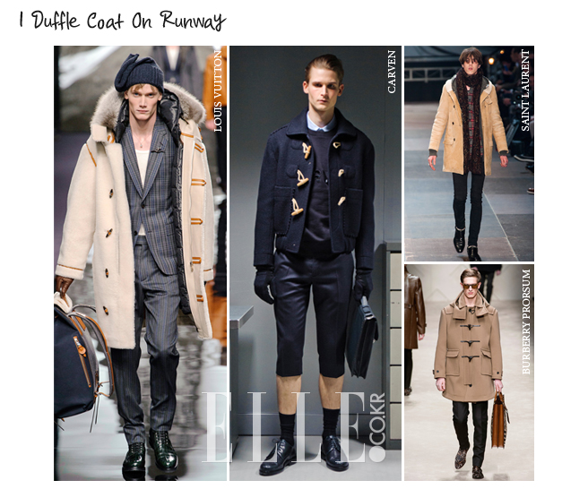 2013 F/W 맨즈컬렉션에 소개된 더플코트를 한데 모았다. 컬러부터 디자인까지 각양각색. 컬러도 큰 차이가 없다. 다만 디자인과 소재에 차이를 뒀다.