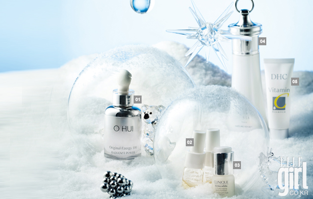 4 얼굴에 입체감을 살려주는 하이라이팅 파우더. 칙칙해진 피부에 생기와 우아함을 동시에 선사하는 일루미네이팅 레이스 이펙트 페이스 파우더. 001호. 12g. 가격미정. 크리스챤 디올. 5 자외선 차단 효과와 시머링 효과를 동시에 지닌 베이스겸 프라이머, 라 바즈 이드라 글로우. 30ml. 5만5천원. 랑콤.