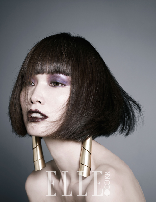 일러스트레이션 작품집을 낸 아티스트의 면모를 지닌 톱 모델 송경아. 20세기 최고의 ‘만능 예술가’였던 만 레이가 만든 나선형의 길다란 골드 이어링을 착용했다. 니트 소재의 튜브 톱은 Dior.