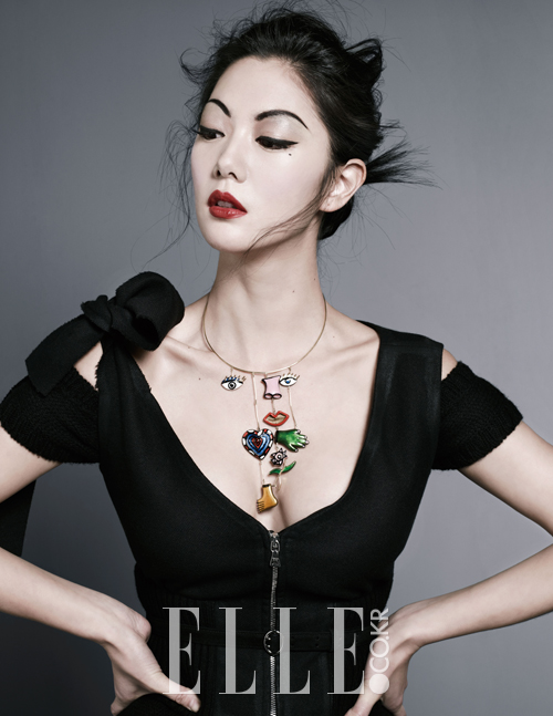 작가, 화가, 영화감독으로 여배우 그 이상의 행보를 보여주고 있는 구혜선. 폭넓은 감수성을 지닌 그녀의 목에 ‘고통에서 피어난’ 아티스트 쿠사마 야요이의 울로 만든 목걸이를 걸어주었다. 레더 소재의 화이트 원피스는 Johnny Hates Jazz.