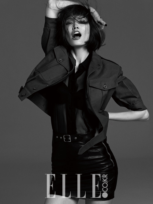 정선의 크림 컬러 새틴 재킷은 2백87만원, Stella McCartney. 화이트 팬츠는 96만8천원, Joseph. 슈즈는 가격 미정, Johnny Hates Jazz. 현‘아의 시스루 톱은 가격 미정, Steve J & Yoni P. 레더 스커트는 가격 미정, Johnny Hate Jazz. 슈즈는 40만원대, Ash. 아이린의 스트라이프 톱은 74만5천원, PushButton. 레깅스 팬츠는 5만9천원, American Apparel.
