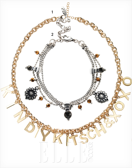 1 이니셜이 촘촘히 박힌 트렌디한 체인 네크리스는 심플한 스웨트셔츠와 매치할 것. 가격 미정, 스타일난다.