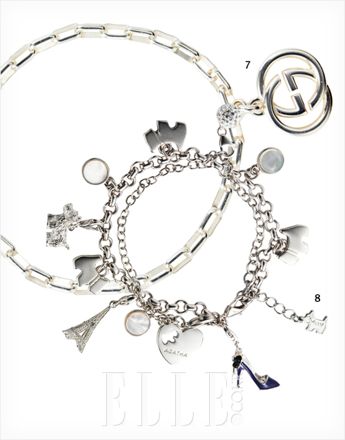 8 에펠탑, 강아지, 하이힐 등 앙증맞은 참 장식을 체인에 걸어 나만의 브레이슬렛을 완성할 수 있다. 가격 미정, 아가타 파리.