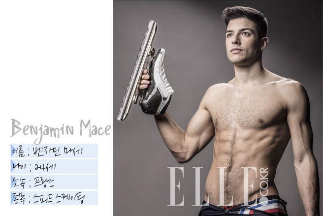 짙은 레드 와인처럼 분위기 있는 프랑스 남자 벤자민 마세. 그는 지난 밴쿠버올림픽 1000m 경기에서 결선 진출에 실패, 5000m 계주 결선에서 5위를 차지하는 등 성적이 부진해 안타까움을 자아냈다. 하지만 잘생긴 외모와 조각 같은 몸매로 여성팬들 사이에서 인기는 계속 치솟고 있으니 스케이팅 성적에 대한 논란은 잠시 접어두자.