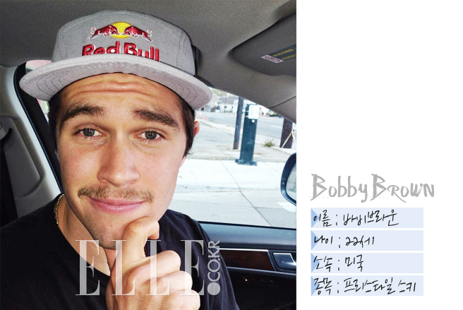 설마 그의 이름을 듣자마자 유명 코스메틱 브랜드를 떠올린 건 아니겠지? 바비 브라운은 미국 국가대표팀 소속 프리스타일 스키선수다. 짙은 눈썹과 건강하게 그을린 피부, 그리고 장난기 어린 표정까지. 훈훈한 외모만큼이나 밝고 경쾌한 성격까지 지니고 있다고 하니 이 남자 ‘10점 만점에 10점’이다.