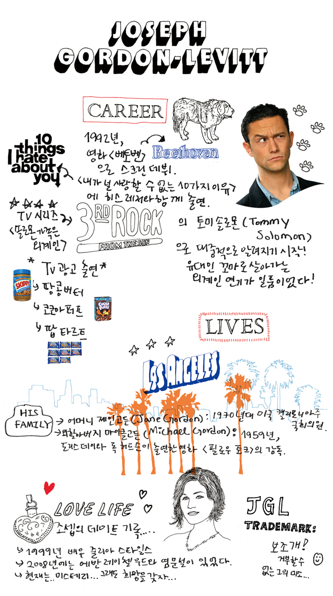 1981년 2월 17일생이요, 이름은 조셉 고든-레빗. 아역 스타에서 작품성 있는 독립영화와 할리우드 대작을 오가며 배우이자 디렉터, 프로듀서, 작가로 종횡무진 활동하고 있는 이 동안 청년에 대한 모든 것을 낱낱이 분석한다.