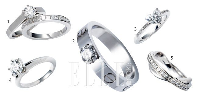 3 ‘사랑해’란 말을 그대로 담고 있는 듯한 하트 컷 솔리테어 링은 신부를 더욱 사랑스럽게 만들어준다. 2천만원대, 쇼파드.