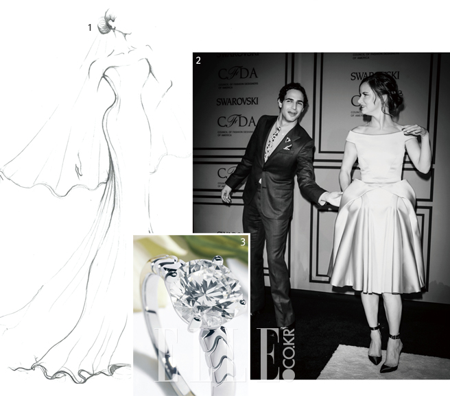 현재 국내외 웨딩드레스의 핫 뉴스는 디자이너 잭 포즌이 론칭하는 웨딩드레스이다. 이름하여 ‘Truly ZAC Posen’ 컬렉션. 잭 포즌은 오래 전부터 화려한 드레스를 잘 만드는 디자이너로 각인돼 온 터. 그래서 포시아 등 할리우드 스타들은 이미 스페셜 오더를 통해 잭 포즌의 웨딩드레스를 입어왔다. 이 흥미로운 프로젝트는 미국의 유명한 드레스 셀렉트 숍 데이비즈 브라이덜(David’s Bridal)을 통해 이뤄졌다. “데이비즈 브라이덜과 작업하면서 내 드레스를 더 많은 사람에게 알릴 수 있는 기회를 맞아 기쁘다. 화려한 스케치를 많이 해두었다. 글래머러스하고, 로맨틱하고, 강렬하며 안에서 밖까지 섬세한 디테일로 무장할 것이다. 이런 잭 포즌의 드레스를 입은 여자가 자신감 넘치고 행복했으면 한다”는 것이 디자이너의 설명. 사이즈는 0부터 14까지, 심지어 16~26사이즈는 스페셜 오더로 제작되며, 가격 또한 850~1350달러 사이의 합리적인 선에서 선보일 것이라는 코멘트가 솔깃하다.