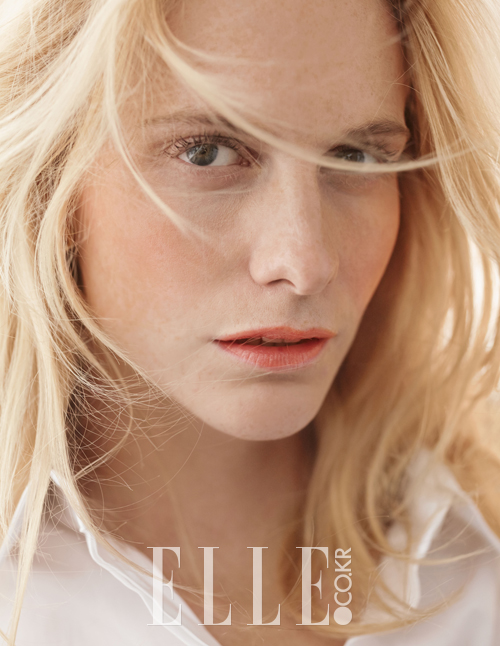 포피의 귀족적인 뷰티를 더욱 돋보이게 하는 내추럴 페미닌 메이크업을 연출했다. 프로 피니쉬 팩트를 이용해 피부 결과 톤을 자연스럽게 커버했다. 그녀의 피부 톤과 잘 어울리는 틴트 피니셔 HD 블러쉬, 410 컬러를 눈매와 볼, 입술에 물든 듯 발라 본래 피부에서 배어 나오는 듯한 혈색을 부여했다. 눈썹엔 아쿠아 브로우 키트를 이용해 아주 자연스럽게 연출. 부드럽게 컬링된 속눈썹은 스모키 엑스트라 버건트를 사용한 것. 사용 제품은 모두 Make Up For Ever.