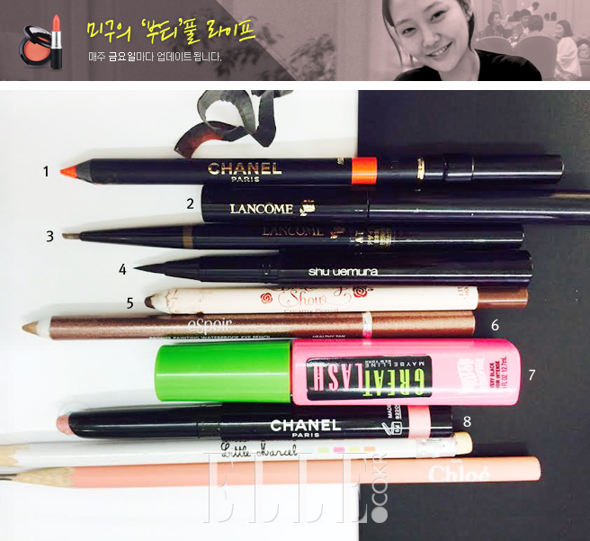 8 샤넬 스틸로 아이섀도, 27 핑크 라군 요즘 모든 아이 메이크업의 베이스는 이 제품으로. 하나만 쓱 발라주면 여리여리 청순청순한 핑크(그러나 촌스럽진 않은) 아이 메이크업이 된다. 혹은 이 위에 브라운 계열의 섀도를 덧바르면 컬러가 한 톤 다운되며 음영 메이크업이 완성. 은은하고 고급스러운 펄 감이 단연 최고!