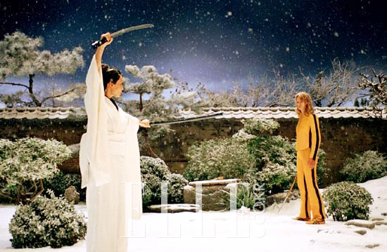 쿠엔틴 타란티노 감독의 뛰어난 상상력과 조금은 과장된 액션을 볼 수 있는 격투신이 영화 <킬 빌>에 등장한다. 주인공 ‘더 브라이드(우마서먼)’와 ‘오렌 이시(루시 루)’는 설원 위에서 아슬아슬한 격투를 벌인다. 특히 검을 휘두르고 서로 부딪히는 리얼한 사운드와 신나는 배경음악이 오묘한 조화를 이룬다. 영화의 전체 신 중에서 감독이 가장 많은 신경을 쓴 장면이기도 하다고 알려진다.
