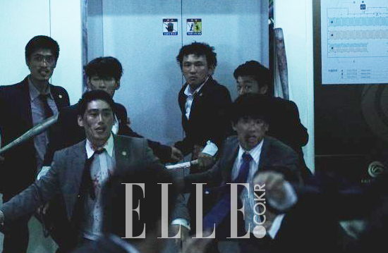 '드루와!'라는 유명한 대사를 남긴 영화 <신세계>의 엘리베이터 격투신. 극 중 국내 최대 범죄 조직 '골드문'의 2인자이자 그룹 실세인 ‘정청’을 연기한 황정민의 카리스마를 제대로 맛볼 수 있었던 장면이다. 엘리베이터에 혼자 남은 그는 그룹 내 또 다른 2인자 ‘이중구’가 보낸 폭력배들의 칼에 여러 차례 찔린다. 하지만 눈빛만은 굴복하지 않고, 이 장면을 흉내내본 남성들도 많다는 후문.