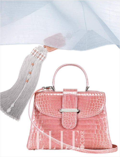 이탈리아 장인 정신을 담은 콜롬보 비아델라스피가와 담연이 컬래버레이션한 특별 패키지가 선보인다. 담연이 디자인한 더스트백은 한국 전통 문양이 새겨진 금색 본견과 매듭 끈, 누빔 장식이 더해져 귀한 보물을 싸는 듯 특별한 느낌이다. 가방을 안정되게 보관하기 위해 겹 작업으로 심을 넣어 세울 수 있도록 했고 포장 박스를 싸는 커다란 겉 보자기는 콜롬보의 브랜드 컬러인 브라운과 그린을 메인 컬러로 제작됐다. 특히 전통 규방 문화를 보여주는 꽃 장식과 상침 기법은 보는 이의 감탄을 자아낸다. 보자기 중앙 묶음 장식은 마치 소복하게 쌓인 꽃 같다. 술이 살아 있는 꽃 장식과 박쥐를 모티프로 한 장식은 부귀영화와 건강, 장수를 상징한다. 겉 보자기의 안감은 세 가지 컬러로 복을 상징하는 와인빛이 감도는 자주색, 부귀영화를 상징하는 골드 오렌지, 최고의 귀함을 상징하는 소색(화이트) 중에서 선택 가능하다. 콜롬보 전 매장에서 상담 후 원하는 컬러와 제품 사이즈에 맞춰 구매할 수 있다.