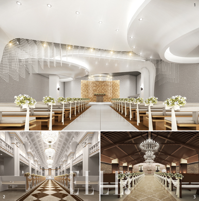 1 천상의 정원을 컨셉트로 한 화이트 홀. 수많은 크리스털이 밤 하늘에 쏟아지는 별을 연상케 한다.