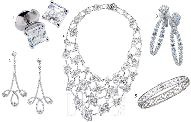 3 64개의 라운드 브릴리언트 컷으로 세팅돼 화려함의 절정을 보여줄 드롭 이어링. 4천만원대, 쇼파드.