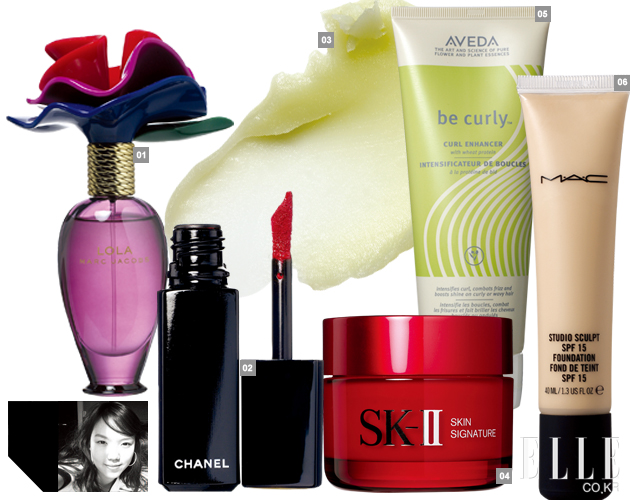 1 마크 제이콥스 로라, 50ML, 8만5천원. 말랑말랑한 플라워 코르사주만 보고 마음을 쏙 빼앗겼다. 보틀 디자인에선 10점 만점에 10점. 스파이시하면서도 달 콤한 향이라 섹시한 분위기를 연출하고 싶을 때는 어김없이 뿌린다. 2 샤넬 루쥬 알뤼르 라끄 75 드래곤, 4만2천원. 진하면서도 탁하지 않은 진짜 예쁜 레드 립스틱을 찾기 힘들다고? 이게 딱 그 컬러다. 평소엔 틴트처럼 톡톡 두드려 발라 혈색을 주는 정도로 연출하고, 특별한 룩을 원할 땐 ‘만년필’처럼 생긴 애플리케이터를 이용해 정교한 레드 립 메이크업을 완성한다. 그야말로 요즘 시대가 원하는 ‘청순+글래머’ 룩이 모두 가능한 아이템. 3 바비 브라운 엑스트라 아이 밤, 9만8천원. 지성 피부지만 피부가 얇은 편이라 예민한 눈가만큼은 건조함과 얇은 주름 때문에 고민이었다. 특히 야근 후 눈에 띄게 탁해진 눈가엔 아이 크림도 무용지물이었는데 바세린처럼 진득한 이 아이 밤이 구원군이 돼주었다. 자기 전 도톰하게 바르고 자면 한결 진정된 피부를 느낄 수 있고, 메이크업 후 녹여서 톡톡 두드리면 물광 효과도! 4 SK2 스킨 시그니처 크림, 16만3천원. 말이 필요없다. 스트레스와 피로로 인한 피부 트러블을 잠재워주고 촘촘한 피부 결을 돌려준 고마운 크림. 생크림처 럼 부드럽게 녹아들고 때처럼 밀리는 일도 없다. 끝까지 크림 한 통을 다 쓰기 쉽지 않은데 재구입까지 하게 만드는 베스트 아이템. 5 아베다 비 컬리 컬 인행싱 로션, 3만6천원. 대책없이 지저분해 보이는 풀린 컬이 항상 고민거리였다. 그 때마다 요긴하게 사용하는 컬 전용 헤어 로션이다. 타 월로 적당히 물기를 제거한 뒤 손바닥을 이용해 발라주면 컬이 자연스러우면서도 탱글탱글하게 되살아난다. 6 MAC 스튜디오 스컬프트 SPF 15 파운데이션, 4만5천원. 컬렉션의 백스테이지에서 아티스트들이 사용하는 것을 본 뒤부터 애용하고 있는 파운데이션. 젤 크림 타입의 텍스 처로 본래 피부처럼 착 밀착돼 도자기처럼 매끈하게 연출된다. 어느 정도 커버력을 갖춰 다소 건조할 수 있지만 지 성 피부인 나에겐 안성맞춤.