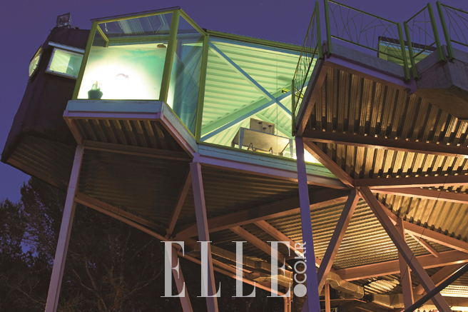 땅에서 6m나 떨어져 있는 별장에 들어서면 아주 아찔한 기분이 든다. 하지만 인테리어 디자이너 루이스 가르시아 프레일(Luis Garcia Fraile)이 고른 가구 디자이너 니콜라스 파이퍼(Nikolas Piper)의 다이닝 테이블과 의자, 아카풀코 (Akapulco) 의자와 북유럽 가구 사리넨(Saarinen)의 커피 테이블, 르 코르뷔지에와 디자이너 샬럿 페리앙이 디자인한 긴 의자와 아티스트 펠로 이라주(Pello Irazu)의 사진 등이 놓인 리빙 공간을 둘러보면 높이에 대한 아찔함은 사라지고 그저 안락한 포만감이 밀려들 뿐이다. 집 안으로 들어온 팜 트리로 인해 숲 속 한가운데서 휴식을 취하고 있는 느낌도 든다. “난 새로운 삶의 공간을 창조하기 위해 끊임없이 고민하고 있어요. 지금 하려고 하는 모든 건축은 어떤 사람이 누릴 공간인지가 제일 중요한데 그 가운데서 창조적인 쉼터를 고안하기 위해 노력하고 있죠. 집이란 휴식을 위한 기능적인 공간이어야 함과 동시에 지극히 개인적인 정서를 바탕으로 해야 한다고 생각해요.” 빛과 물을 담은 이 별장은 곧게 자라는 나무만큼이나 순수해서 그곳에 사는 사람마저 유순하게 만든다. 건축의 힘은 앙드레 자크의 창조적 영감이 발휘됐지만 결국 자연과 함께 공존하는 삶을 살기 위해 지구상에서 인간이 꿈꾸는 마지막 염원을 담은 집이라 더욱 특별하다.