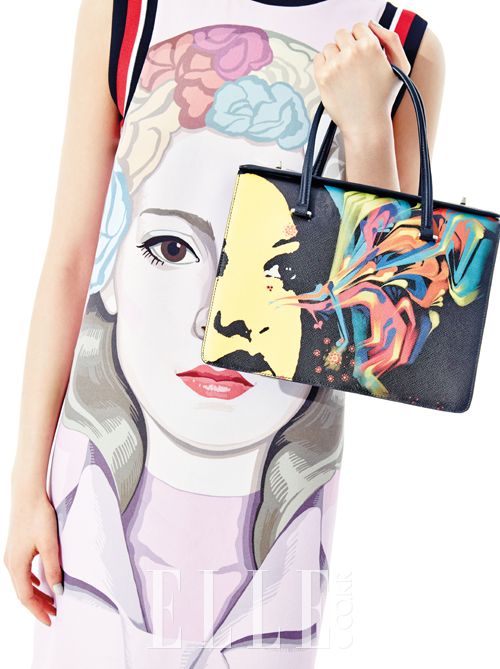 그래피티 아티스트와의 컬래버레이션으로 탄생한 얼굴 프린트 원피스는 2백만원대, 얼굴 프린트 백은 4백만원대로 모두 Prada.