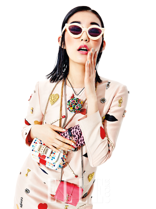 만화 같은 모티프를 더한 드레스는 4백만원대, Stella McCartney. 슈거볼 같은 네크리스는 가격 미정, Ann Demeulemeester. 스트라이프 선글라스는 30만원대, House of Holland by Optical W. 컬러풀한 스터드 장식의 체인 백은 2백10만원, Christian Louboutin. 베이비 캐츠 프린트와 핑크 컬러의 모노그램 캔디 백은 각각 1백20만원, 모두 Saint Laurent.