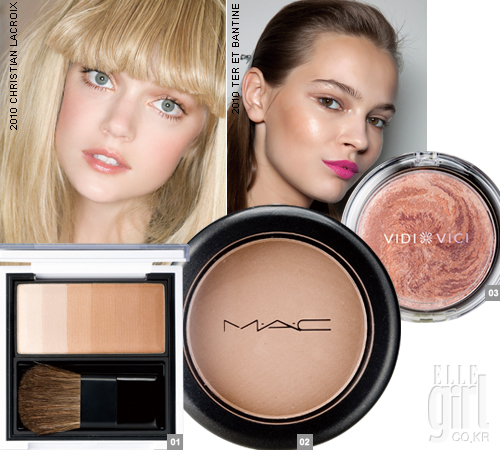 1 프로페셔널 셀렉션-블러셔 02호. 5.5g. 2만5천원. 라네즈. 2 파우더 블러쉬 스타일. 6g. 3만원. 맥. 3 오로럴 코메츠 블러셔 01호. 10.3g. 4만원. 비디비치 by 이경민.
