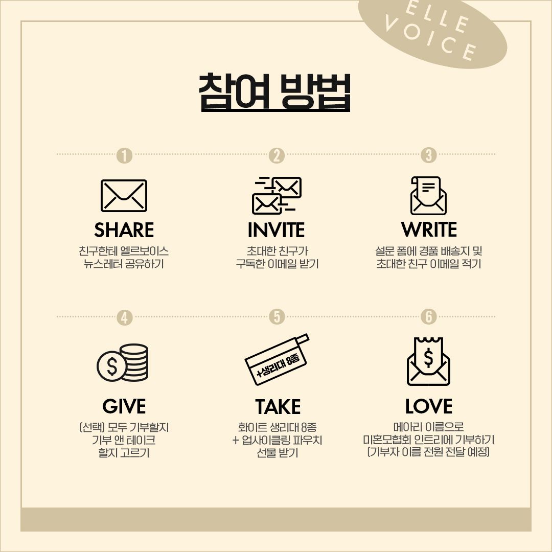 뉴스레터에 친구를 초대하면 생리대 1세트를 받고, 1세트를 미혼모협회 인트리(https://intree.or.kr/) 에 기부하게 되는 구조로, 500세트의 생리대를 받고 기부함으로써 총 250세트가 미혼모들을 위해 사용되었습니다.