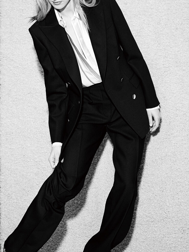 기억을 더듬어보니 정말이지 가슴을 붕대로 꽁꽁 동여맨 남장 여자가 아니고서야, 바지 정장을 멋지게 차려입은 여성을 대중 매체에서 본 기억이 드물었다. 굳이 <섹스 앤 더 시티>까지 가지 않아도 내가 자라면서 본 많은 직장인 여성 캐릭터들은 화려하고 섹시하게 묘사돼 왔으니까. 올여름 <검색어를 입력하세요 WWW>가 얼마나 반가웠던가. 포털 업체 임원급인 세 주인공들은 일하는 장면 대부분에서 바지 정장을 입고 있었고, 팽팽하게 대립하는 날에 ‘똑’ 떨어지는 수트가 한층 강조됐다. 얼마 전 <퀸덤> 최대의 화제가 된 AOA의 ‘너나 해’ 무대는 어떤가. 섹시의 상징처럼 여겨지던 걸 그룹 멤버들이 수트를 입고 무대에 선 유튜브 클립은 조회 수 1000만 뷰를 가볍게 넘겼다. 형태가 무엇이 됐든, 저마다 근무 환경에 최적화된 각자의 전투복을 하나씩 갖고 있어야 하지 않을까. 정글과도 같은, 치열한 오늘의 한국 사회를 살아 나가기 위해서. 그리고 바지 정장은 내게 꽤 잘 맞는 전투복이다.