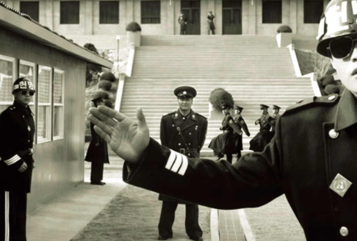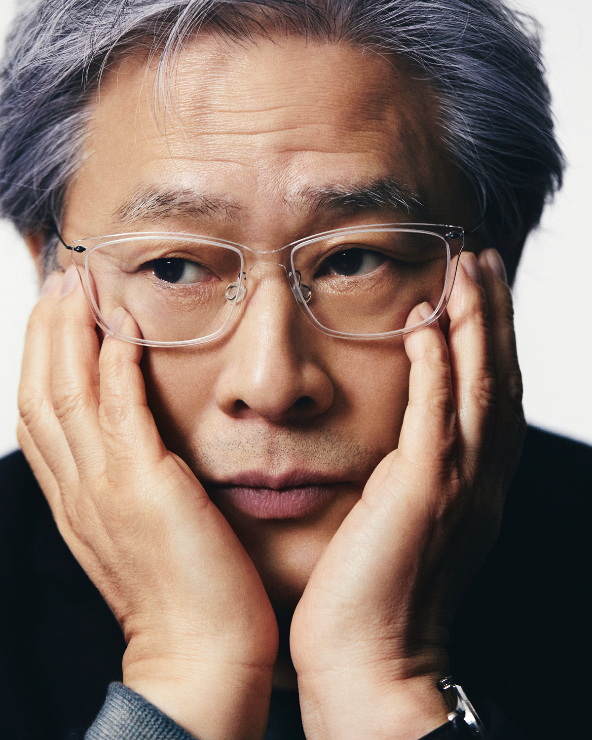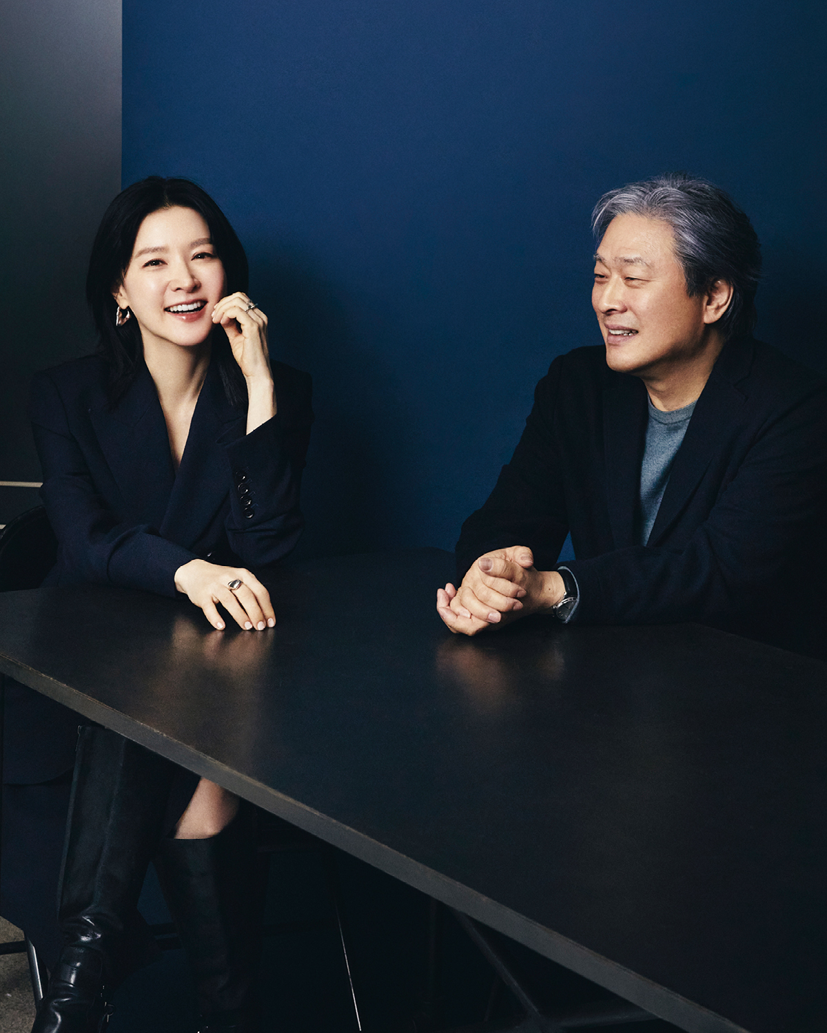 이날의 만남은 한국 콘텐츠 산업 전반에 넓고 깊은 영향력을 행사해 온 CJ ENM의 창립 30주년 기념 ‘비저너리 선정작’ 영화 부문에 〈공동경비구역 JSA〉가 이름을 올린 것을 축하하며 성사됐다. 박찬욱 감독 앞에 놓인 비저너리 트로피.