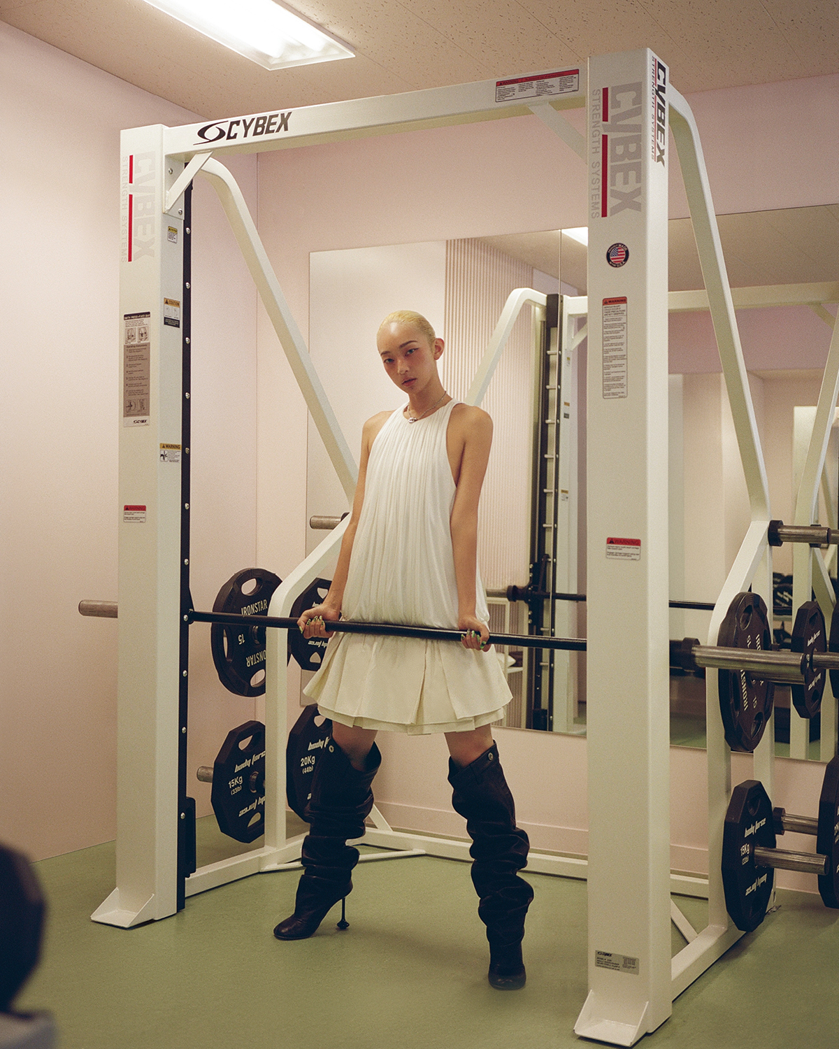 쿄카가 입은 화이트 드레스와 네크리스는 모두 Loewe.