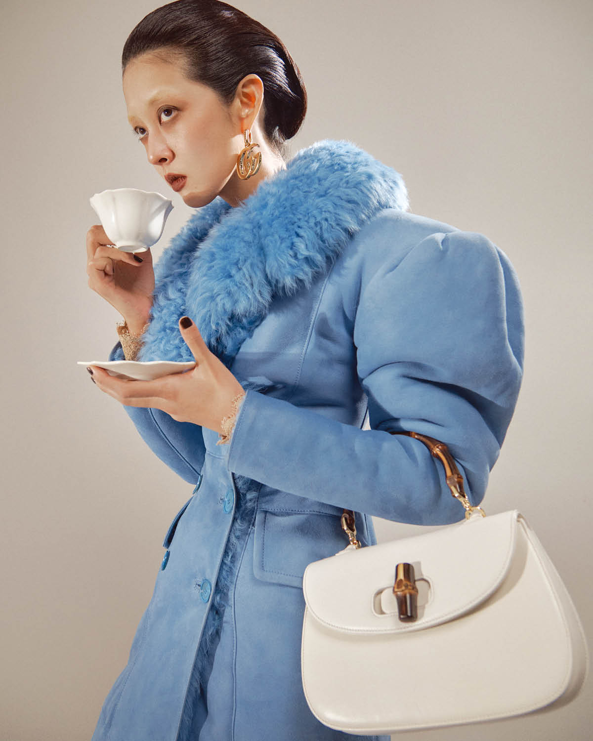 눈보라 속에서도 우아한 디올 가방과 디올 우먼