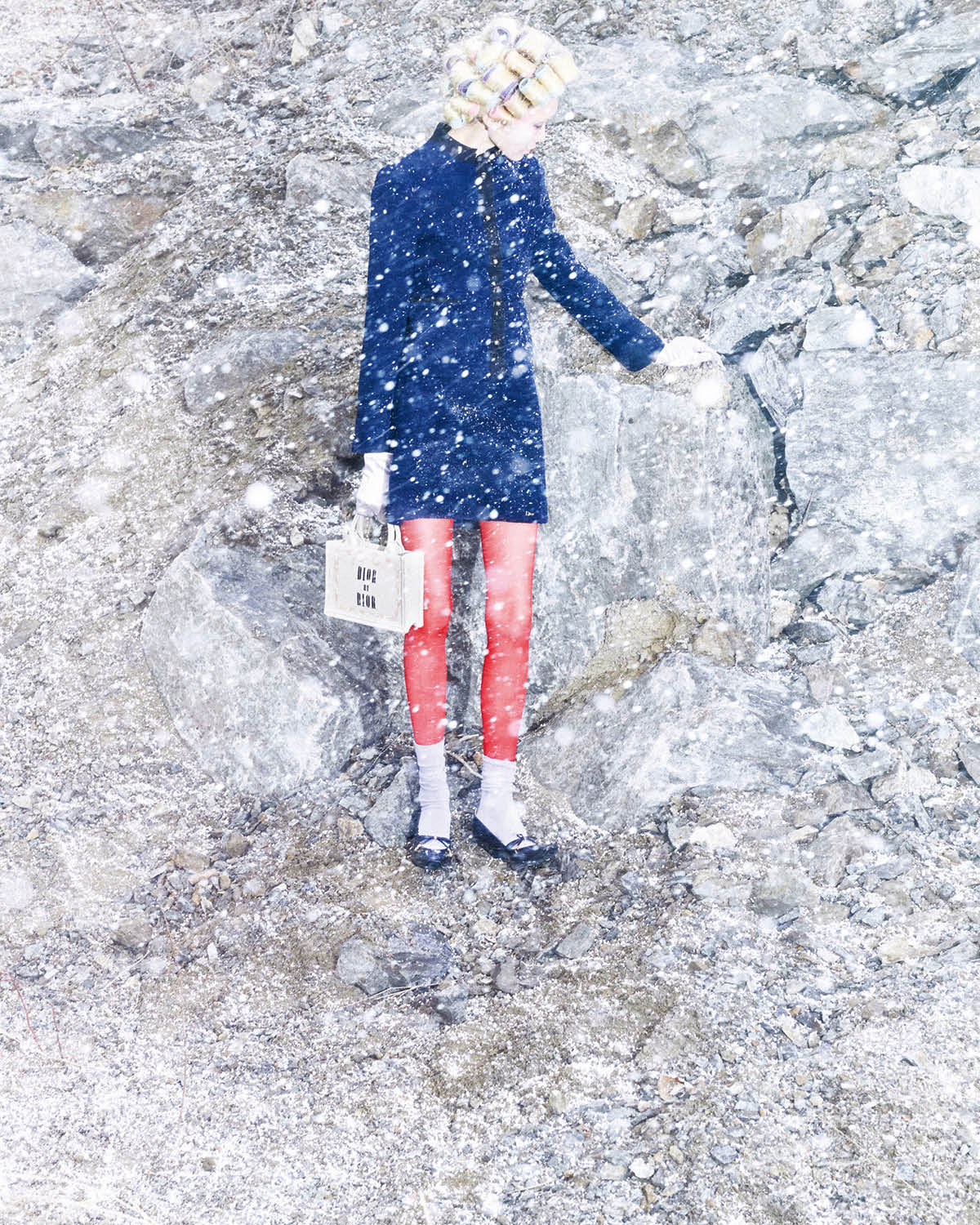 눈보라 속에서도 우아한 디올 가방과 디올 우먼