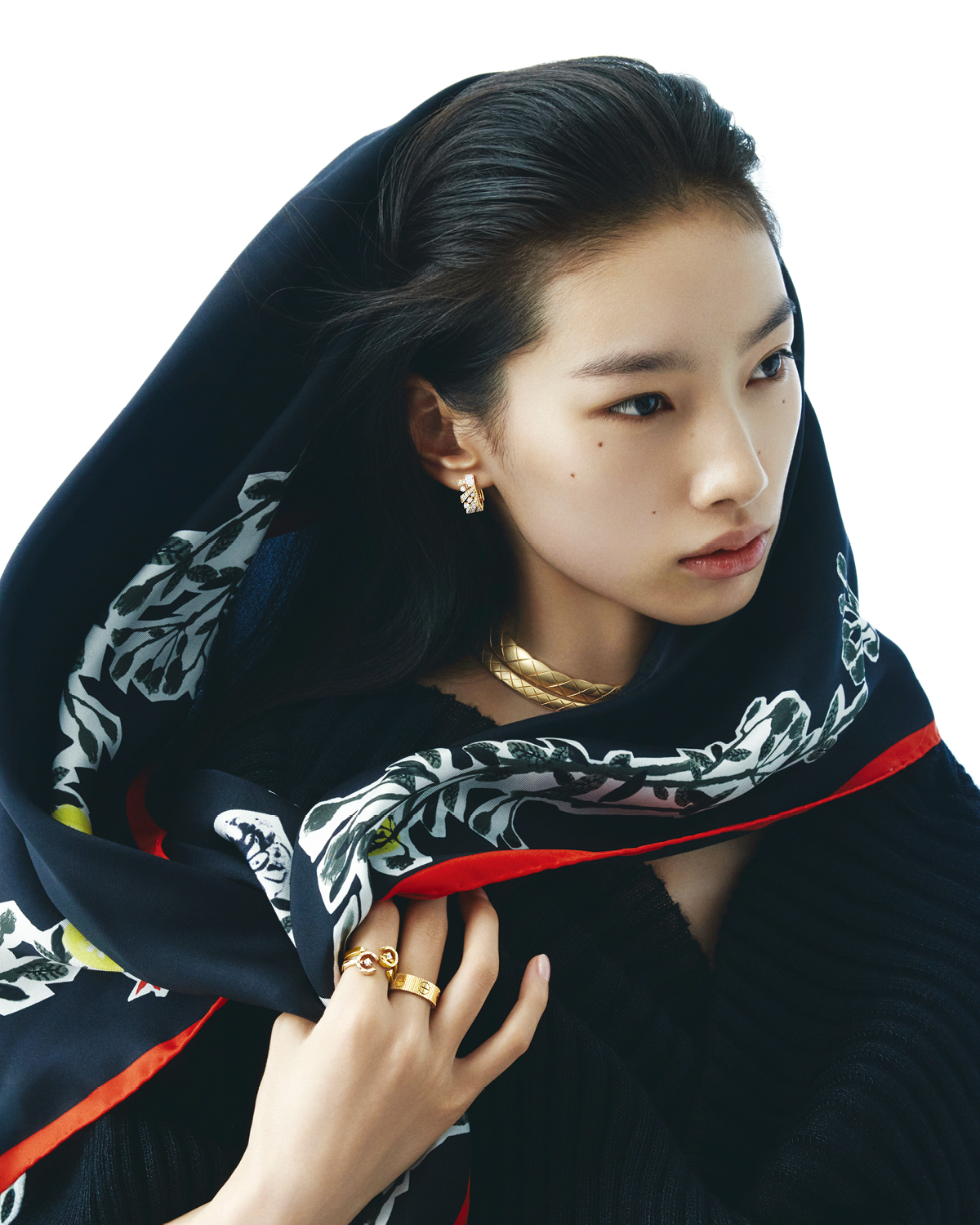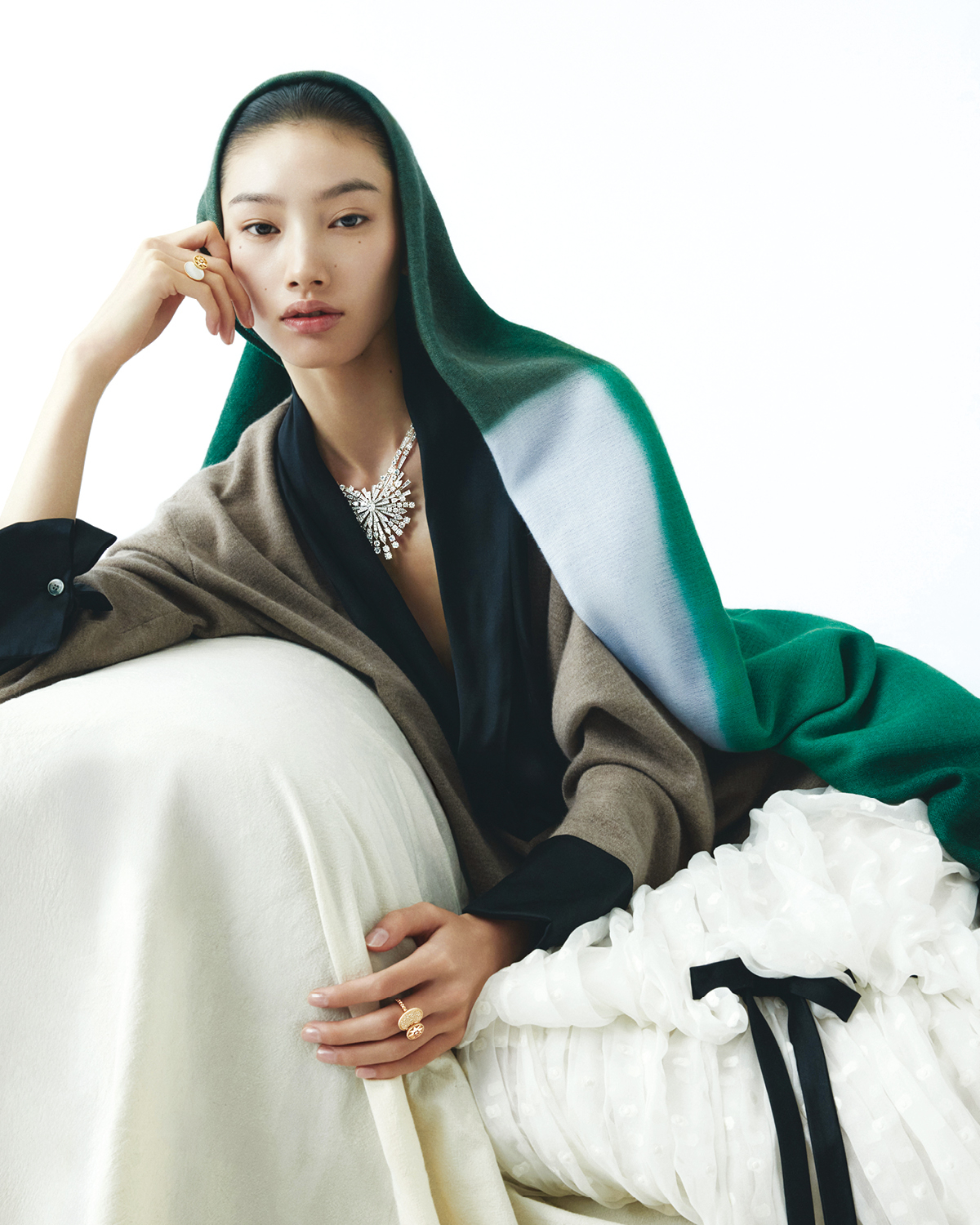 환절기 스카프 스타일링에 더한 주얼리 레이어드