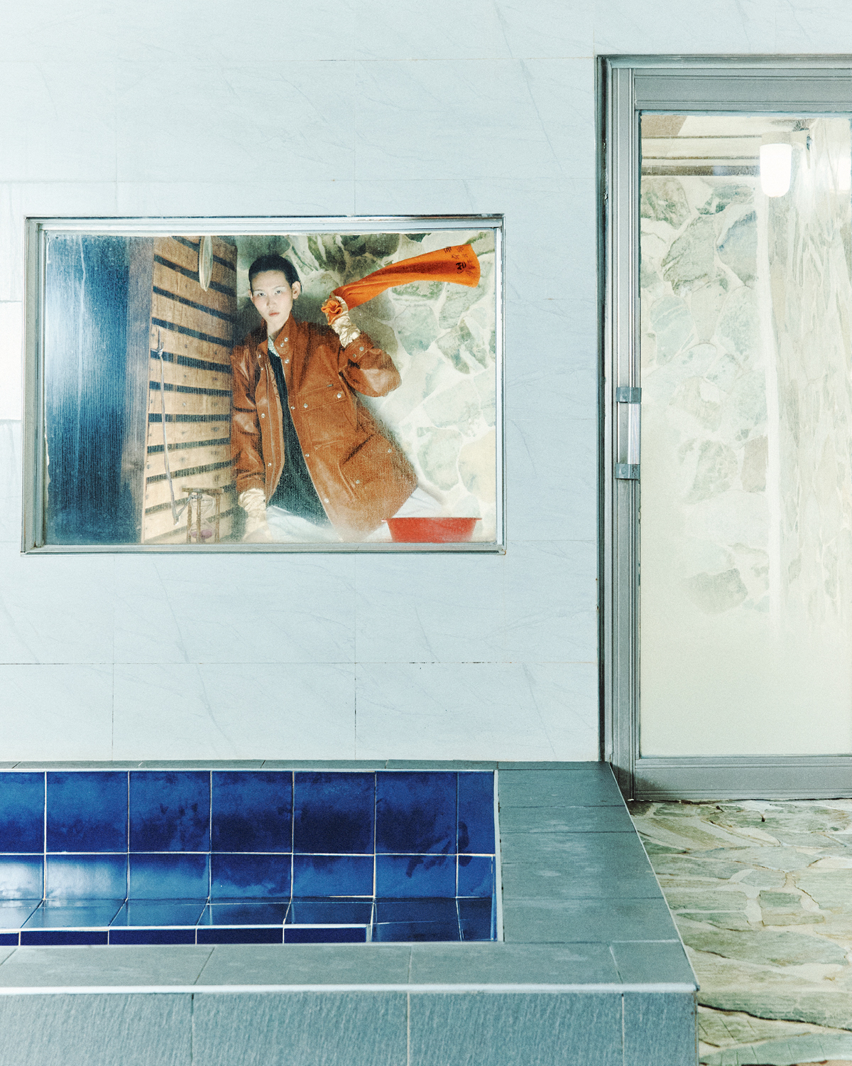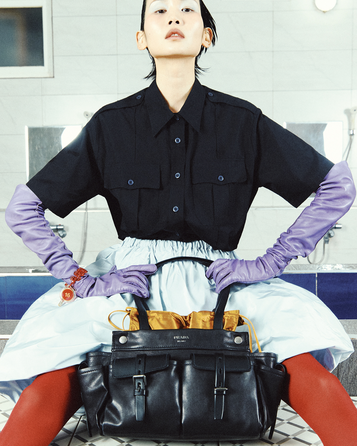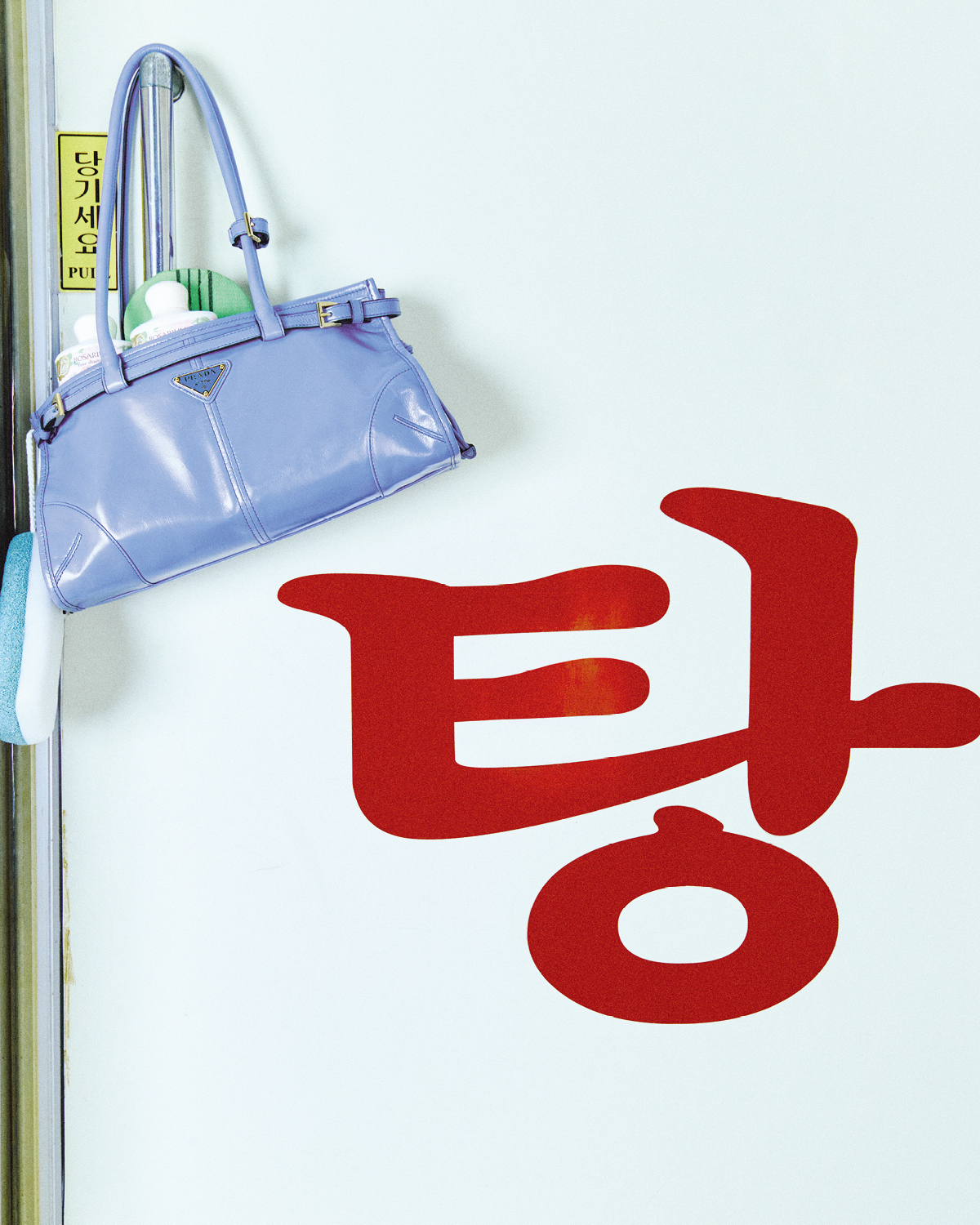목욕탕에서도 떼놓지 못하는 프라다 가방과 스커트