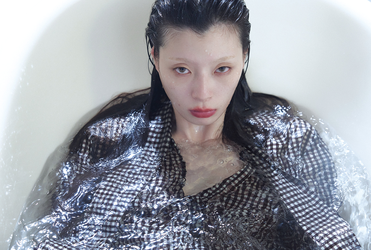 목욕탕에서도 떼놓지 못하는 프라다 가방과 스커트